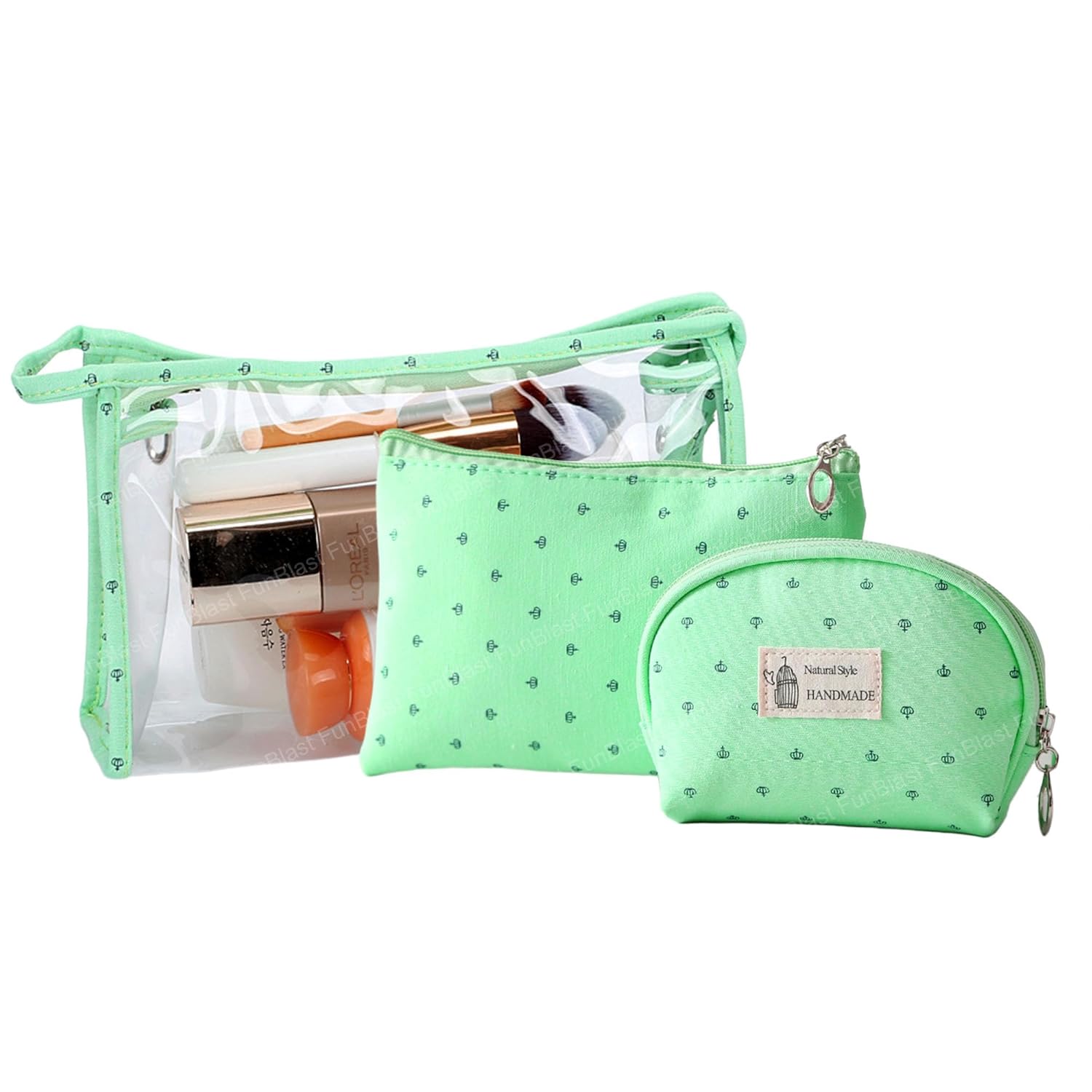3 Pcs Cosmetic Makeup Pouch with Zipper Lock for Women (Green)