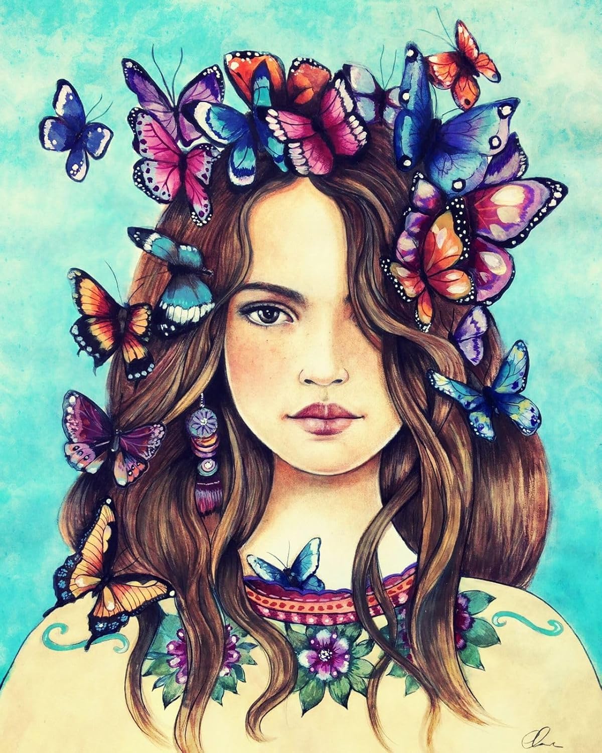 5D Diamond Painting Kit for Kids and Adults - 12x16inch Suitable for Home Leisure and Wall Decoration, Gift for Kids and Adults (Girl with Butterfly)
