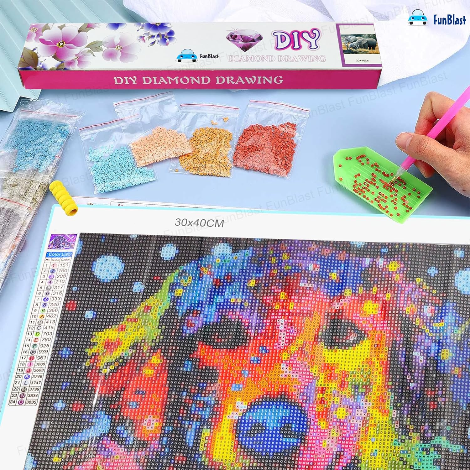 • Complete Kit: FunBlast 5D diamond painting kit includes everything you need to get started—pre-printed canvas, diamond gems, applicator tools, and adhesive. This all-in-one package ensures a hassle-free crafting experience.