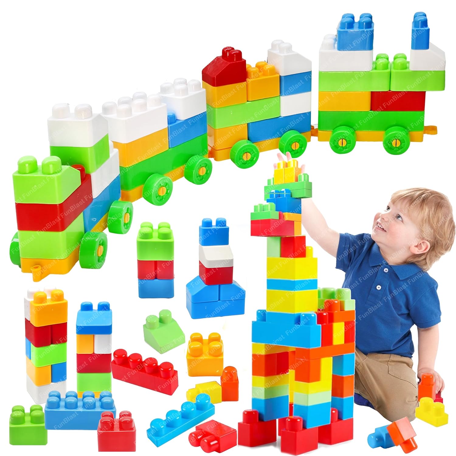Building Blocks for Kids with Wheel, 64 Pcs with 16 Movable Wheels