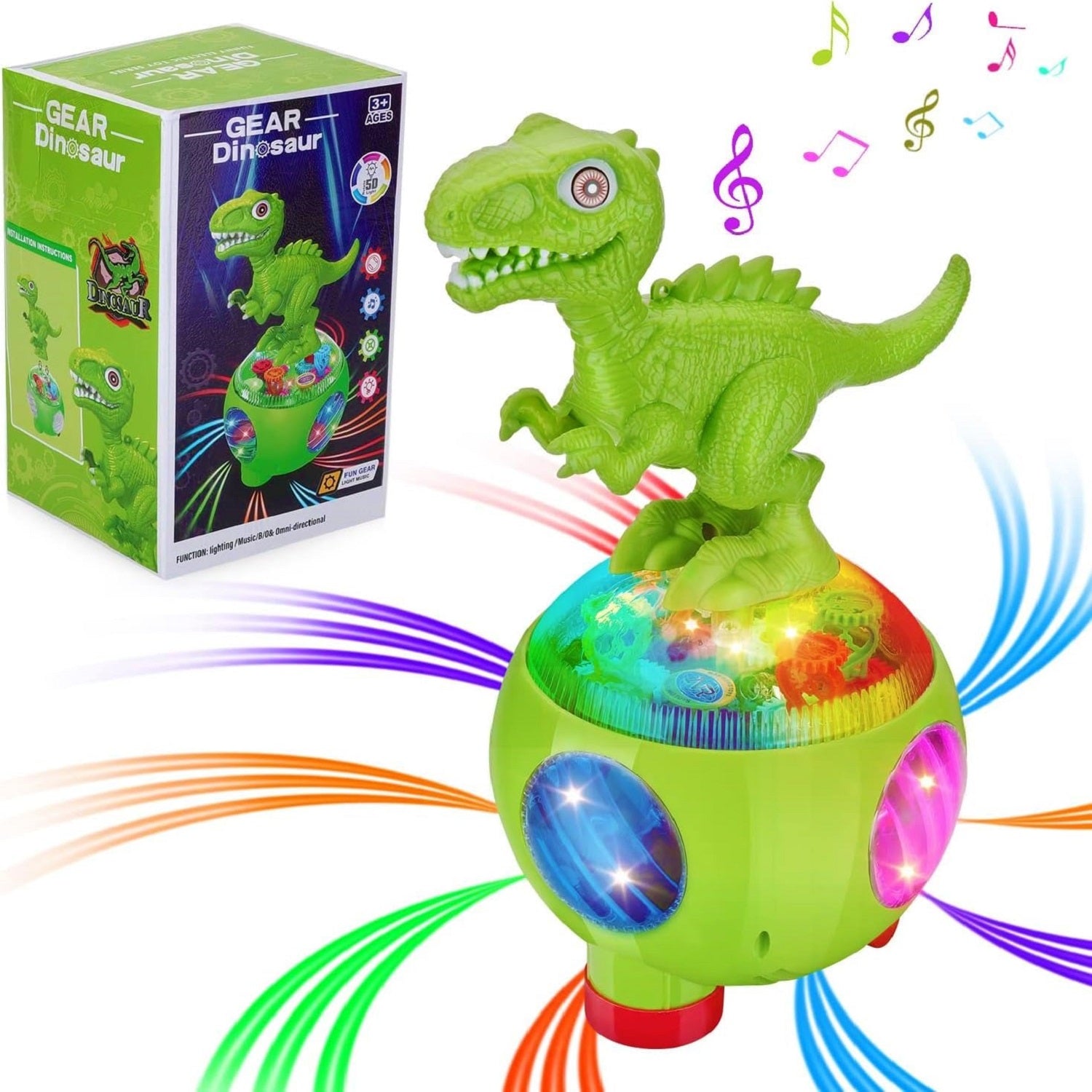 Dinosaur Gear Toy for Kids – 360 ° Rotating Musical Toys for Kids, Battery Operated Toys for Kids, Toys for Kids, Bump & Go Toys, Transparent Gear Toys, Gifts for Kids