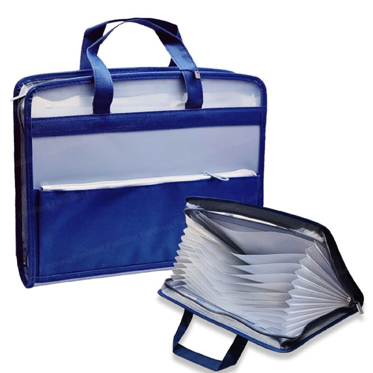 • File Folders for Documents – FunBlast file holder for documents is made of plastic with 12 pocket storage zipper lock and handle for easy carrying
