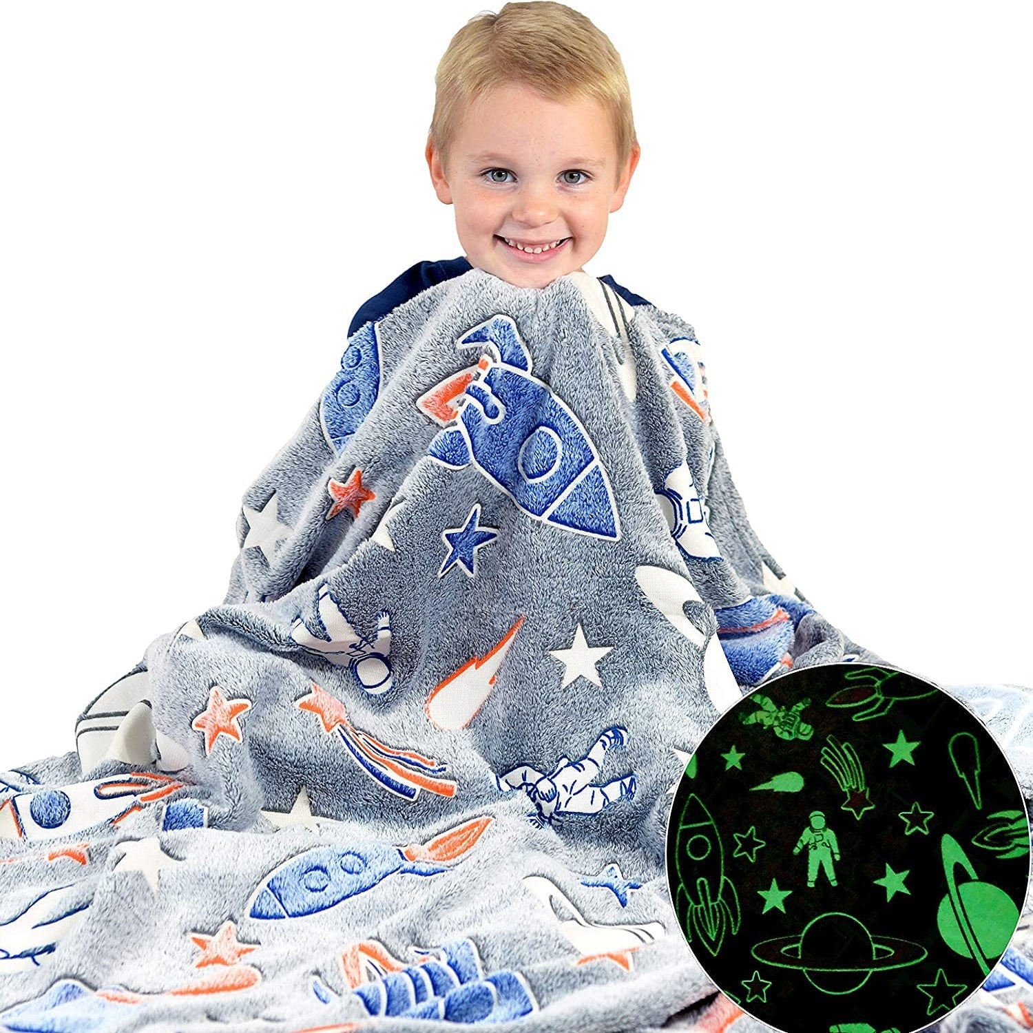 Glow in The Dark Blanket for Kids – Cartoon Print Blankets for Kids, Light Weight Soft Cozy All Weather Blankets for 1-10 Years Old Toddlers Baby Boys & Girls
