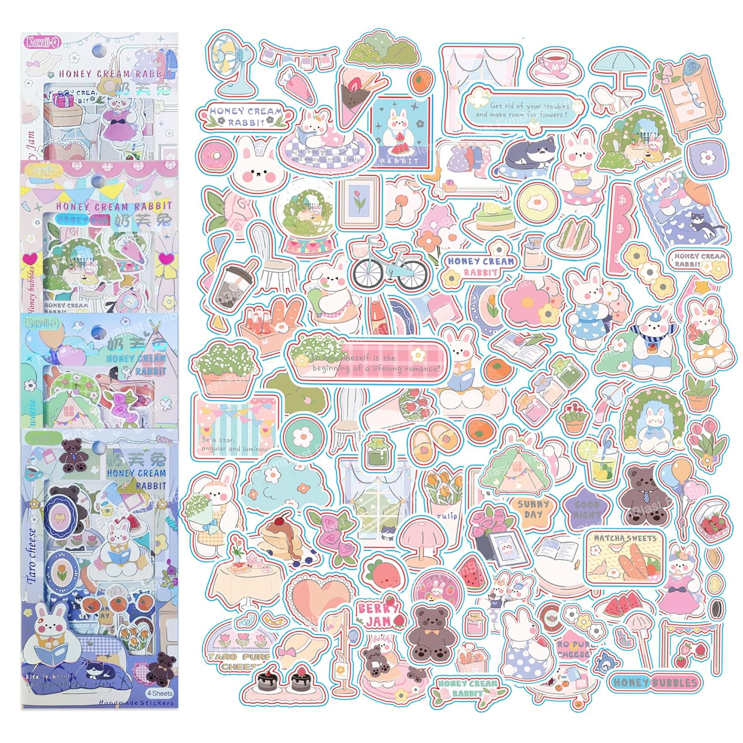 Kawaii Stickers Set – 16 Sheet (100+ Pcs) DIY 3D Stickers for Girls, Aesthetic Sticker, Stickers for Journaling, Scrapbooking, Cute Stickers Set (Honey Cream Rabbit 4x4=16 Sheets)