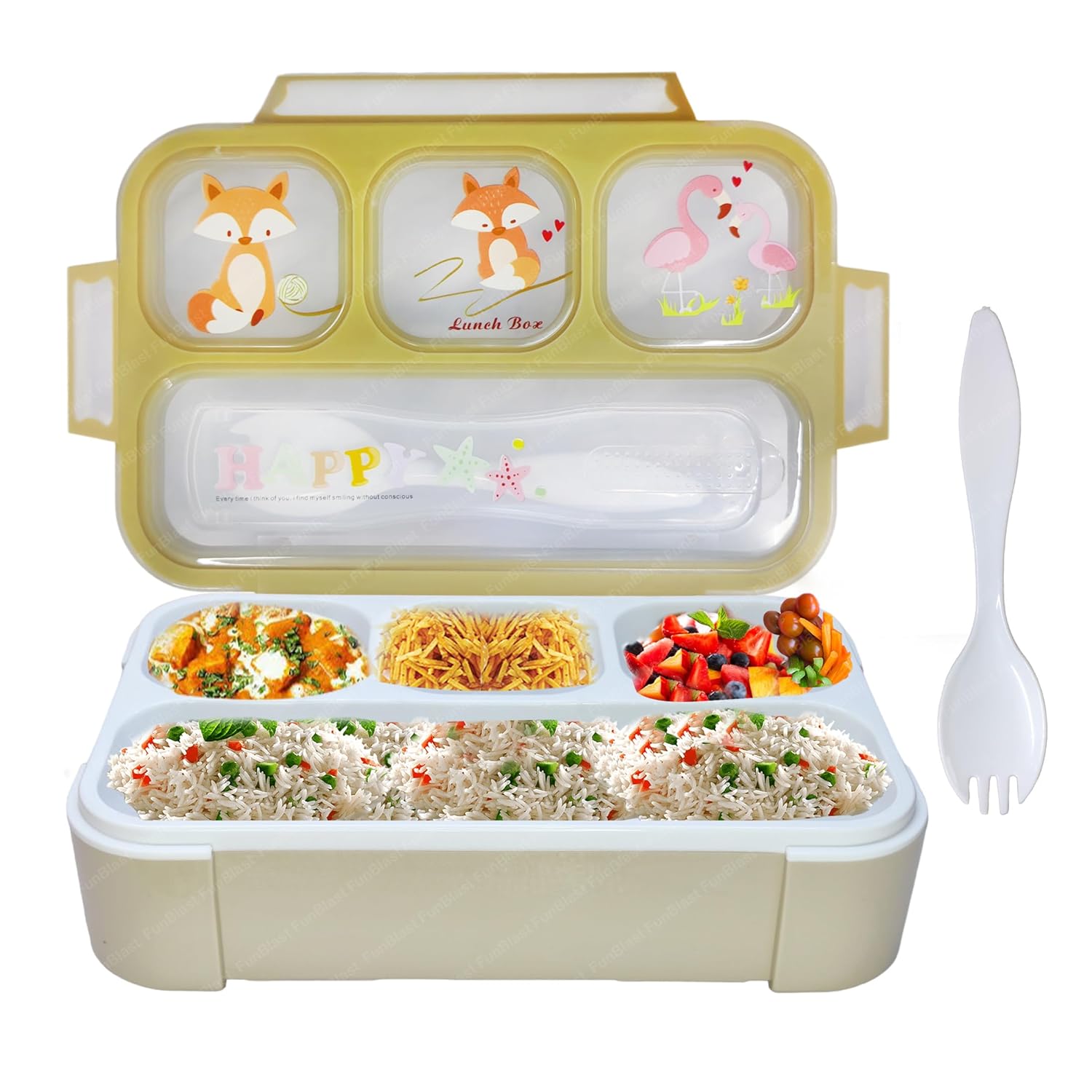 Lunch Box for Kids – Airtight Leak-Proof Tiffin Box, Lunch Box with Fork, Plastic Microwave Safe Tiffin Box with 4 Small Compartment, Bento Box (Green)