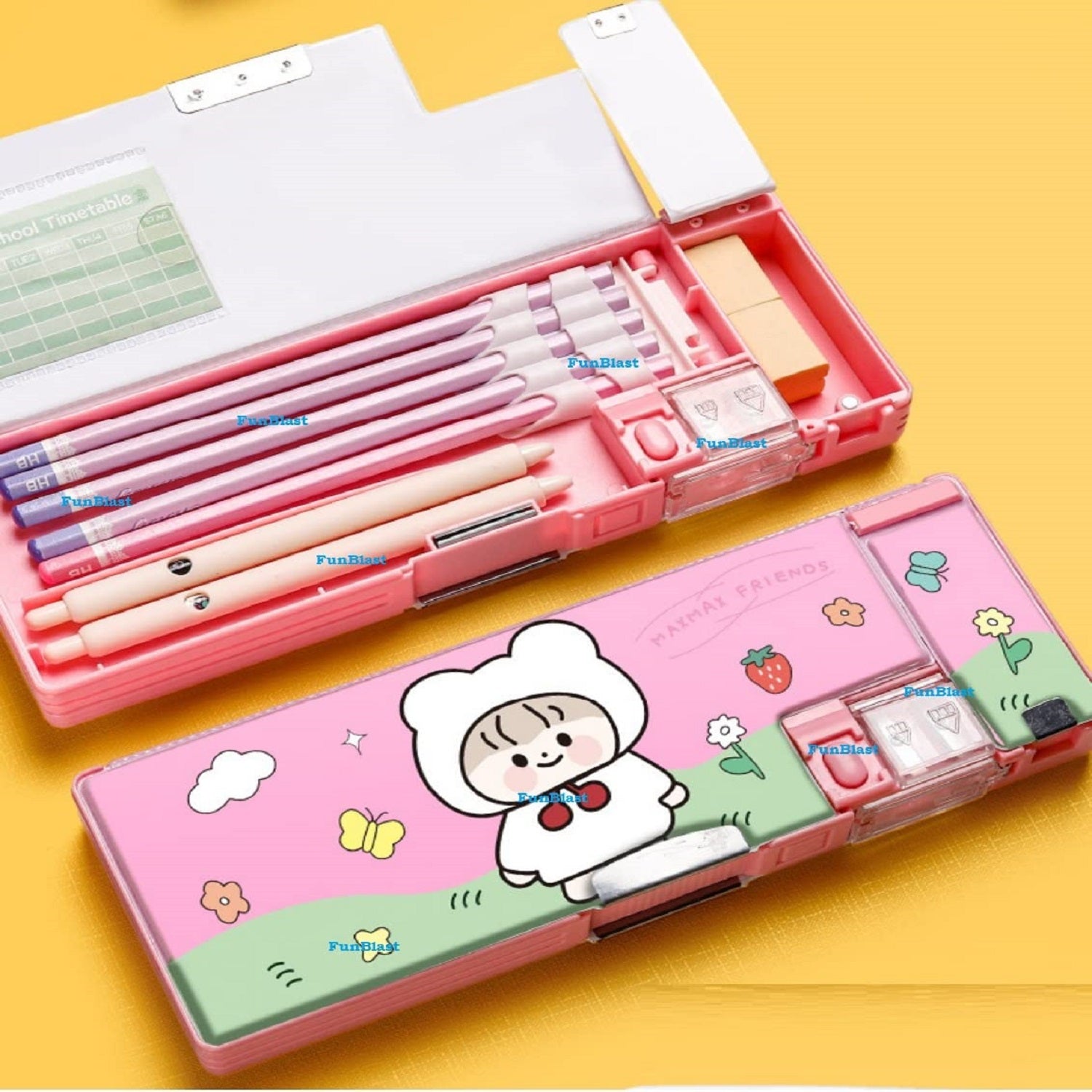• Cartoon Pencil Box: This unique box can accommodate all the necessary stationery that your child would need to carry to school with separate slots for pencil, rubber, eraser, geometric set