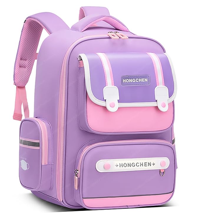Stylish School Backpack for Kids - Multiple Compartments Backpack for Boys and Girls, Waterproof, Ultralight Travel, Picnic Bag with Wide Shoulder Straps (Purple-Pink)