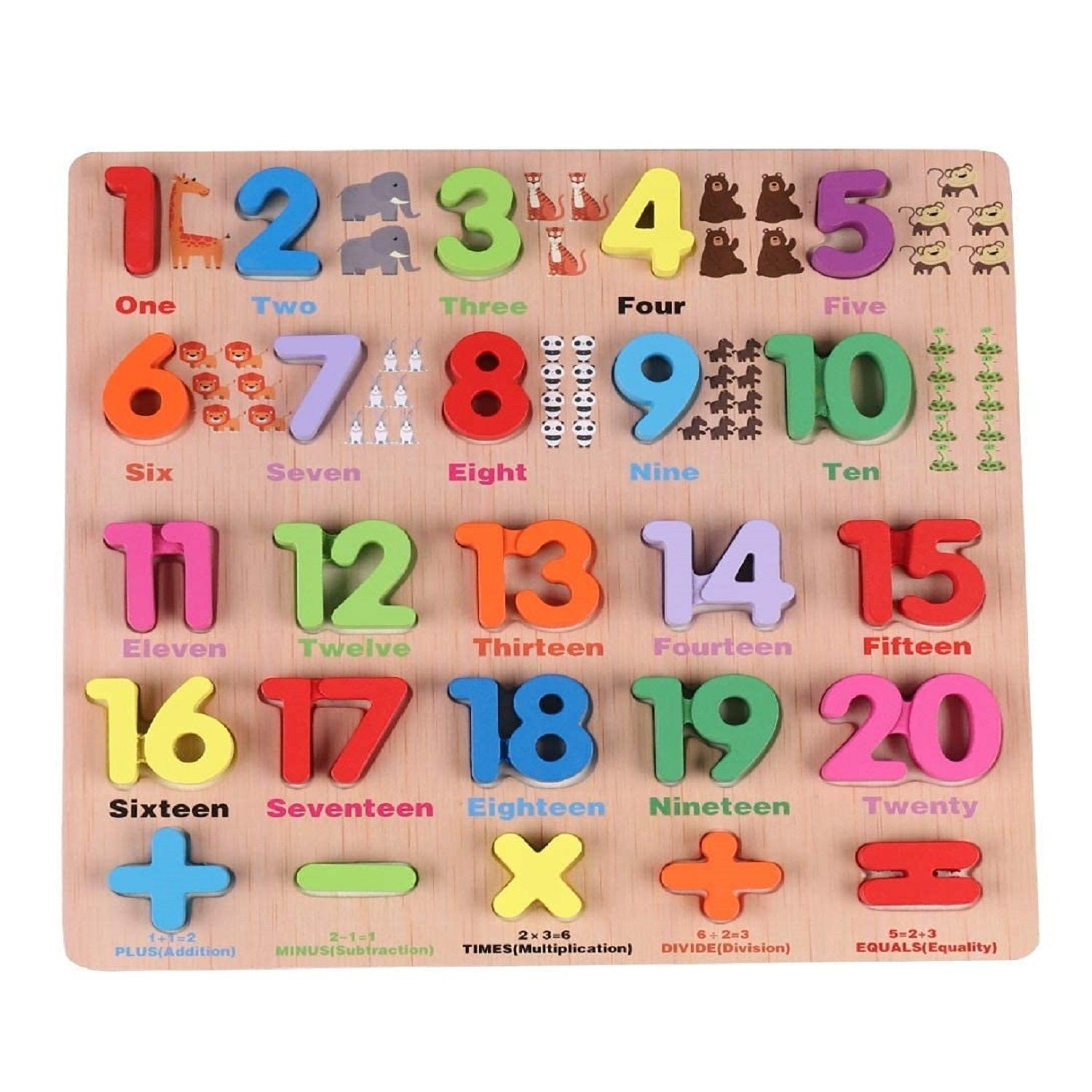 Wooden Number Puzzles Toys for Kids, Number Board Educational Learning Letters Puzzle Toy - 25 Pcs